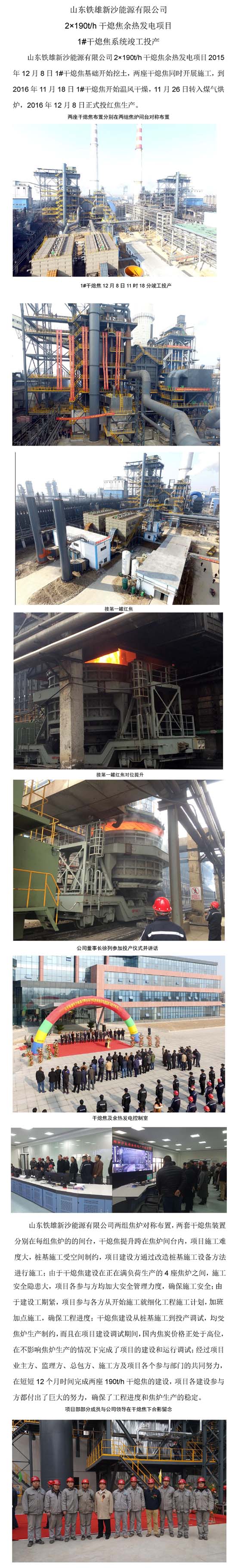 铁雄项目1#干熄焦项目投红焦现场报道