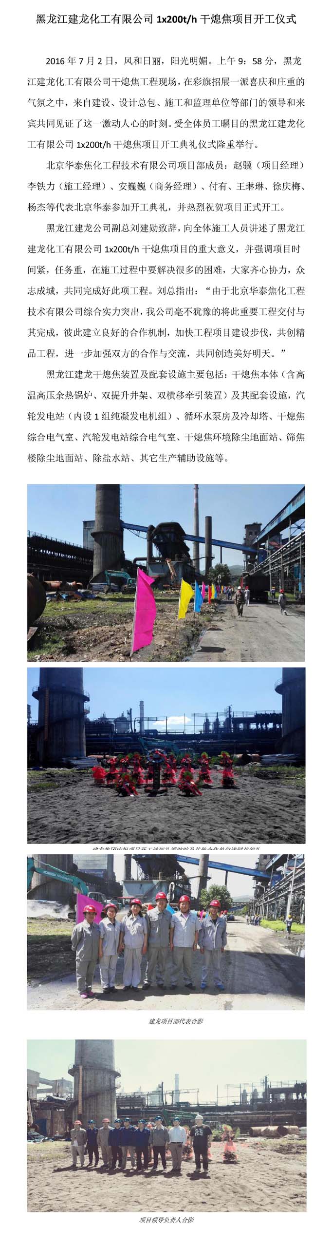 黑龙江建龙化工有限公司1x200t/h干熄焦项目开工仪式
