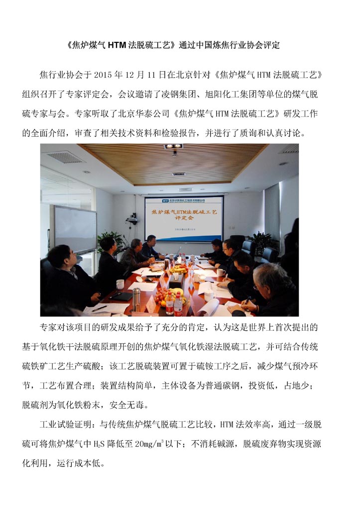 焦炉煤气HTM法脱硫评定报道