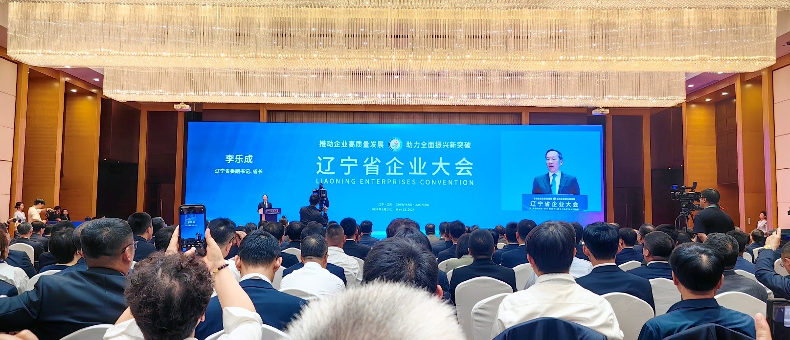 以“推动企业高质量发展,助力全面振兴新突破”为主题的辽宁省企业大会于5月13日在沈阳召开。上午的大会由省委副书记、省长李乐成主持,先进企业代表知名人士进行了发言,省委书记、省人大常委会主任郝鹏进行了专题发言。下午的会议由省委副书记、沈阳市委书记王新伟主持,省委副书记、省长李乐成进行了发言,中国企业改革研究会会长、国务院国资委原党委委员、秘书长彭华岗以及另外七位嘉宾发表了演讲。会议对在全面振兴新突破三年行动首战之年作出突出贡献的企业予以通报表扬。我公司董事长徐列受邀参加辽宁省企业大会。